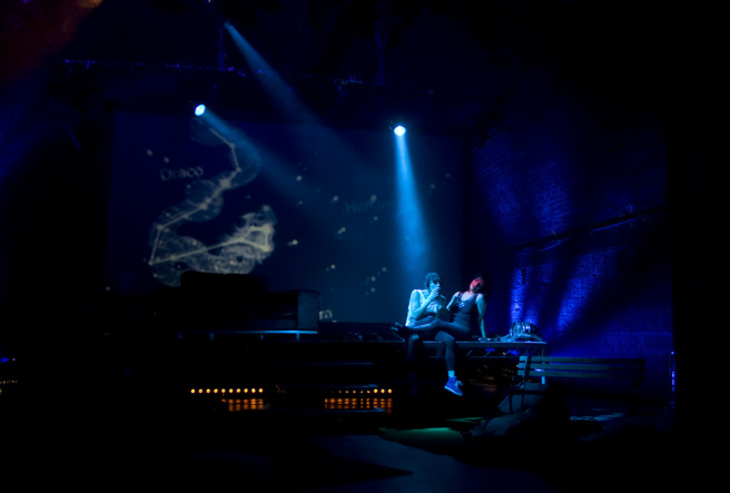 Whatever Gets You Through The Night has had a couple of slight returns since. The original creative team briefly reunited for a project dreaming up imaginary shows for posters around Glasgow – ours was a Roald Dahl inspired site-specific theatre show in the Tunnock’s tea cake factory, with Momus as Willy Wonka, which I’d still love to do in real life. This year David adapted his opening piece for Whatever Gets You Through The Night as Bees, a short film for the National Theatre of Scotland’s Scenes for Survival series. And last year I created a one-off Hebridean version of the show with Emma Pollock, the Sea Atlas, Gaelic singer Ceitlin Smith, a Ricky Ross cover by me, and some of Daniel Warren’s films from the original project, which was a lot of fun to do. It wasn’t theatre – it was Cora’s magic touch that made the original show work and I wouldn’t have dared try to replicate that – but it was a good night. It’d also be fun to do a proper revival, for its tenth anniversary perhaps, with a new generation of Scottish writers and musicians.