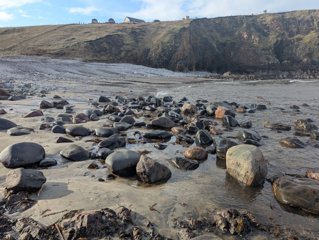 As a slightly solitary creature I’m nervous about writing in this way, and in two minds about whether to pursue it further, particularly given that I don’t speak Gaelic. I’ve heard it said that unless you speak Gaelic you will never fully understand Lewis and I’m sympathetic to this view (it’s true, for example, of the title of Mairi’s exhibition, a Gaelic play on words whose meaning will be completely lost on a non-Gaelic speaker). I feel on safer ground just singing about the landscape, like on The Stream, a song written in the early days of Covid-19 lockdown as I walked my dog up the hill above our village and realised that this small patch of land was mostly enough for me and that I had no desire to travel anywhere anyway (a position of incredible luck and privilege, I know, particularly back then).